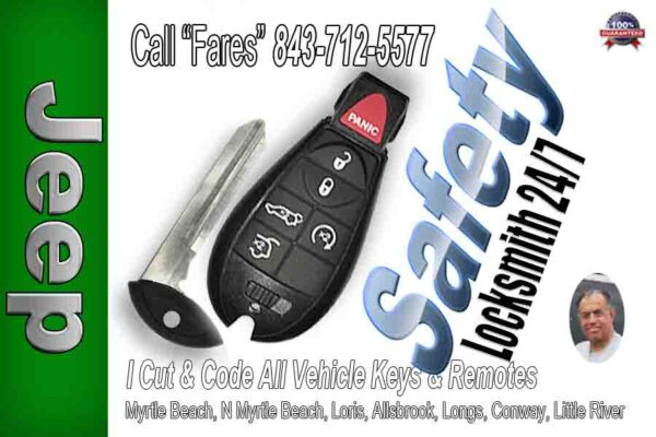 Jeep Locksmith Little River – Safety is a full service Home Commercial and Car Key specialists. We Code all brands of vehicles. Call Fares (843) 712-5577